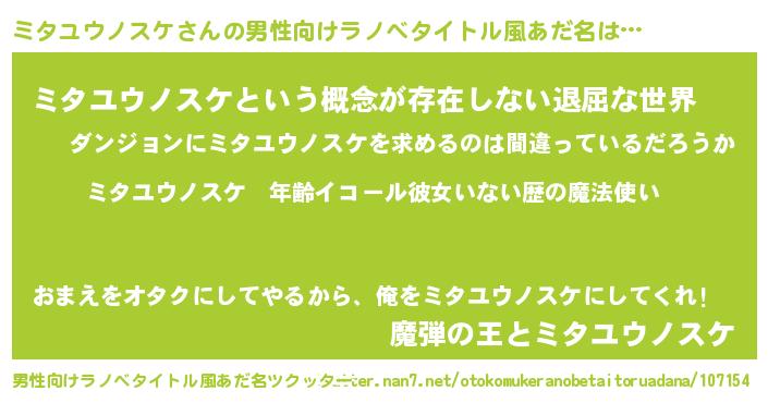| ヒーロー風カッコイイあだ名 | 『ネオミタユウノスケ』『仮面ミタダー』 |