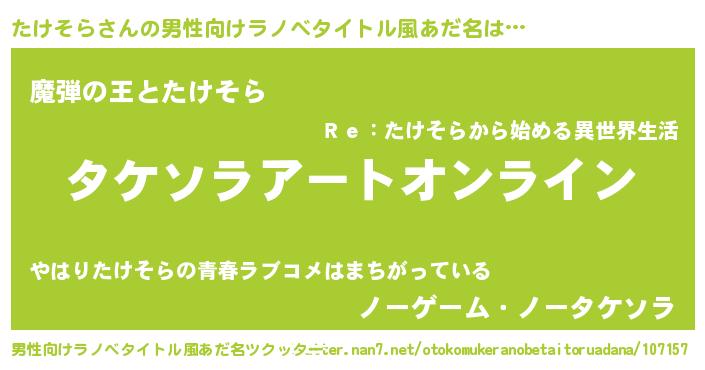 | 胡散臭い通販商品みたいなあだ名 | 『億万長者になれる水晶球…その名も「たけそら」』 |