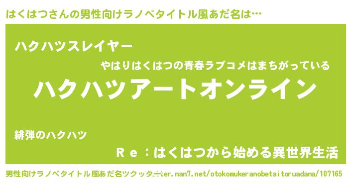 | 胡散臭い通販商品みたいなあだ名 | 『億万長者になれる霊験あらたかなお札…その名も「はくはつ」』 |