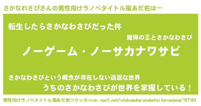 | 女子向けラノベタイトル風あだ名 | 『死神さかなわさびの再婚』 |