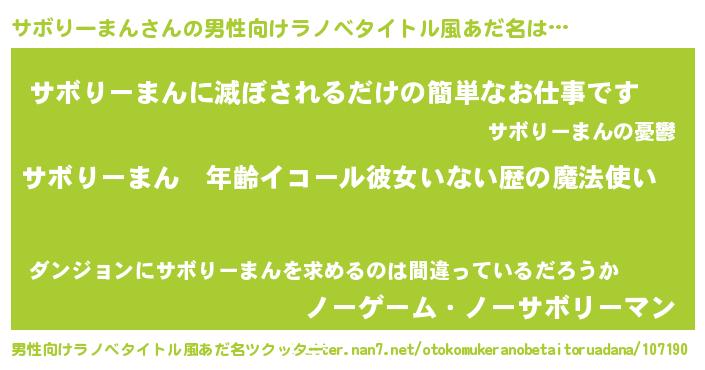| ヒーロー風カッコイイあだ名 | 『慈愛の使者サボりーまん』 |