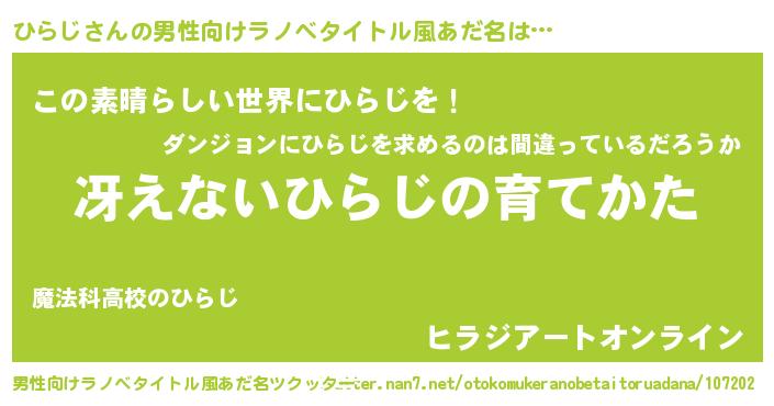| 胡散臭い通販商品みたいなあだ名 | 『世界中を虜にした100年もののヴィンテージワイン…その名も「ひらじ」』 |