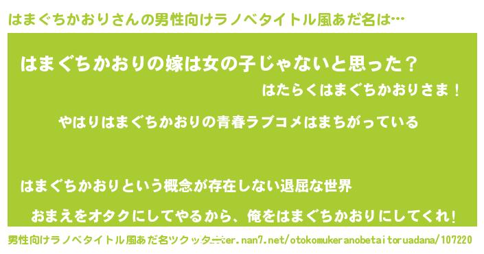 | 女子向けラノベタイトル風あだ名 | 『はまぐちかおり伯爵の花嫁』 |