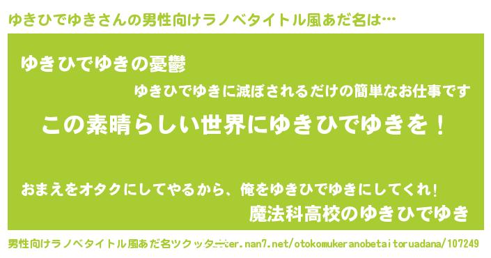 | 女子向けラノベタイトル風あだ名 | 『悪役ゆきひでゆきに転生したようですが、知った事ではありません』 |