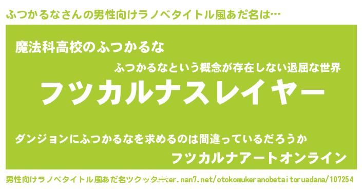 | ヒーロー風カッコイイあだ名 | 『超時空戦士フツカルナ』『魔戒騎士フツ』 |
