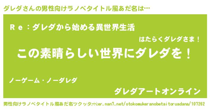 | 女子向けラノベタイトル風あだ名 | 『乙女ゲームの破滅フラグしかない悪役ダレダに転生してしまった…』 |
