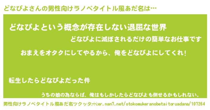 | 女子向けラノベタイトル風あだ名 | 『どなぴよ夫妻のなれそめ』 |