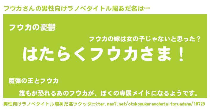 | 胡散臭い通販商品みたいなあだ名 | 『必ず成功する霊験あらたかなお札…その名も「フウカ」』 |