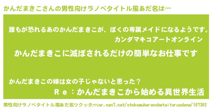 | 胡散臭い通販商品みたいなあだ名 | 『前代未聞の水素水…その名も「かんだまきこ」』 |