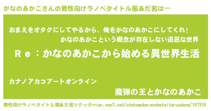 | 伝説のあだ名 | 『救世主となる占い師かなのあかこ』 |