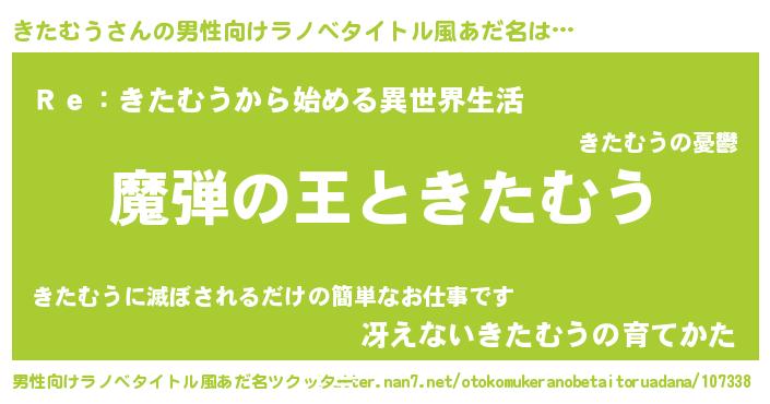 | 女子向けラノベタイトル風あだ名 | 『きたむうが死なない童話 林檎のきたむうの診療簿』 |