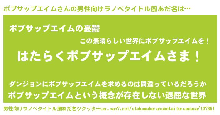 | 胡散臭い通販商品みたいなあだ名 | 『モテモテ間違いなし霊験あらたかなお札…その名も「ボブサップエイム」』 |