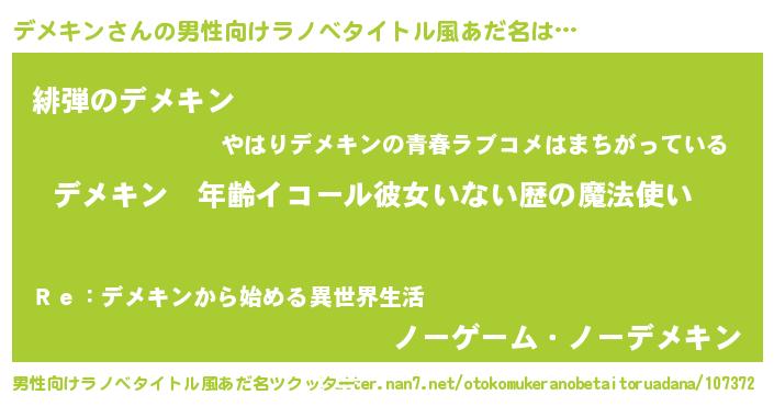 女子向けラノベタイトル風あだ名 | 『デメキンの玉の輿計画!』 |