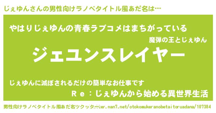 | ヒーロー風カッコイイあだ名 | 『ウルトラじぇゆんマン』『仮面ジェダー』 |