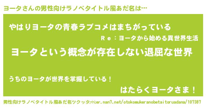 ヨータさんの男性向けラノベタイトル風あだ名をツクッター!