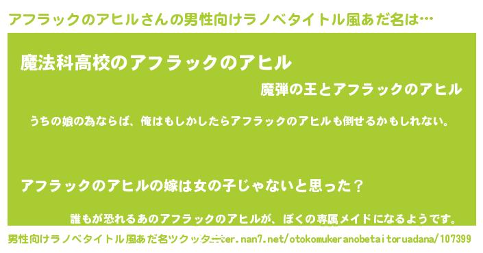 | 女子向けラノベタイトル風あだ名 | 『アフラックのアヒル伯爵の花嫁』 |