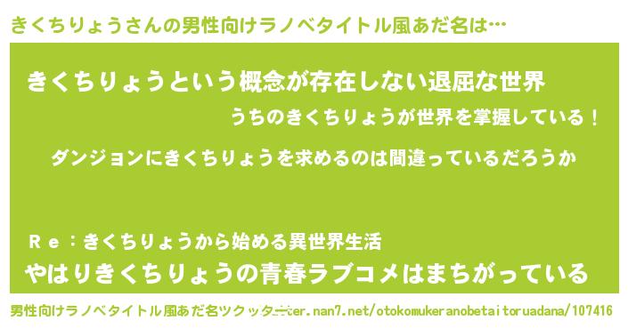 | 女子向けラノベタイトル風あだ名 | 『きくちりょうは平凡を望む』 |
