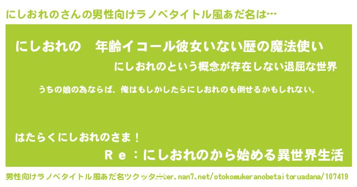 | 胡散臭い通販商品みたいなあだ名 | 『運命の人と巡り会える高級そうな壺…その名も「にしおれの」』 |