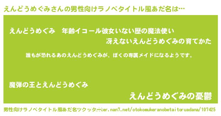 | ヘコむあだ名 | 『えんどうめぐみ(笑)』『えんにゅー』 |