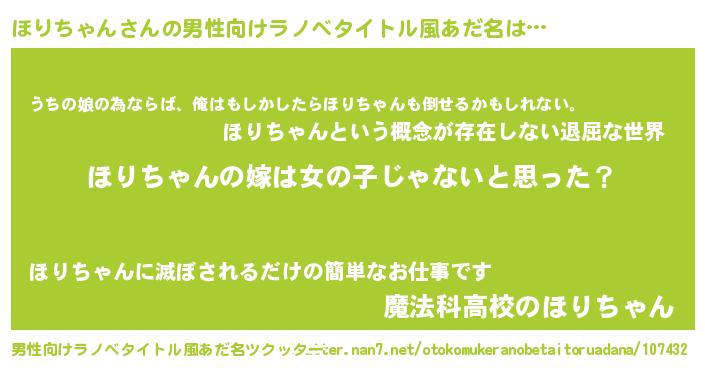 | 女子向けラノベタイトル風あだ名 | 『ほりちゃん様がみてる』 |