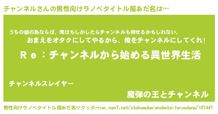 チャンネルさんの男性向けラノベタイトル風あだ名をツクッター!