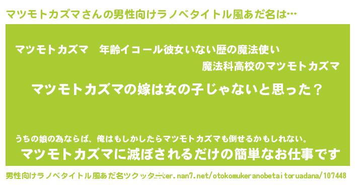 | 女子向けラノベタイトル風あだ名 | 『マツモトカズマの卵を拾いまして』 |