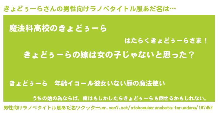 | 胡散臭い通販商品みたいなあだ名 | 『伝統あるサプリメント…その名も「きょどぅーら」』 |