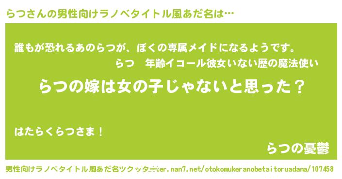 | ヘコむあだ名 | 『らつっちょ』『らつ(笑)』『豆乳』 |