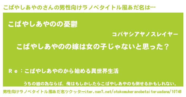 | 女子向けラノベタイトル風あだ名 | 『こばやしあやの様がみてる』 |