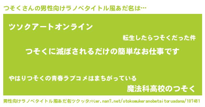 | 胡散臭い通販商品みたいなあだ名 | 『億万長者になれる霊験あらたかなお札…その名も「つそく」』 |