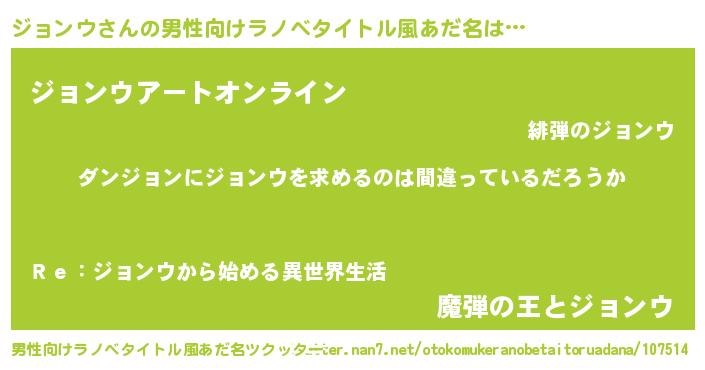 | 女子向けラノベタイトル風あだ名 | 『ジョンウは平凡を望む』『闇のジョンウ』 |
