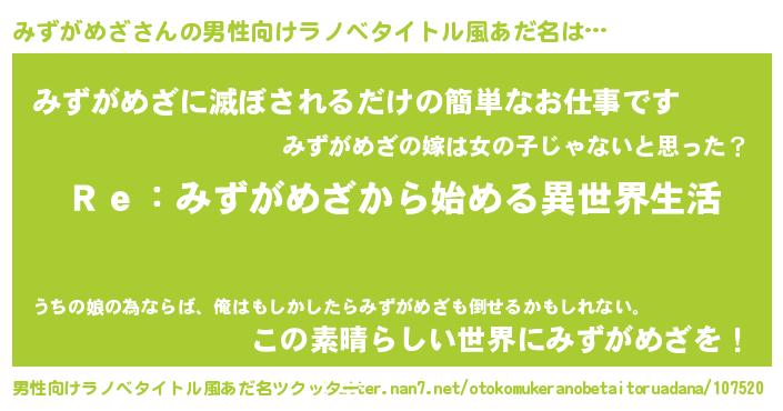 | 意味不明あだ名 | 『自称みずがめざ』『永久保存みずがめざ』 |