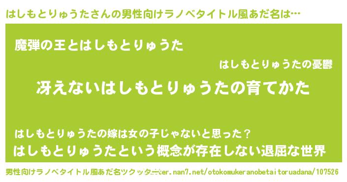 | 意味不明あだ名 | 『住所不定無職はしもとりゅうた(86歳)』 |