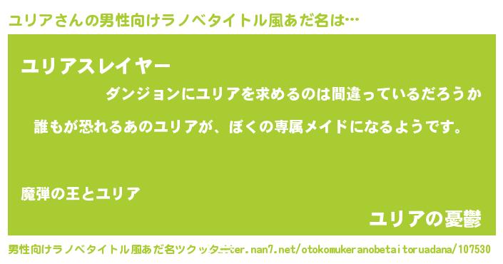 | ヘコむあだ名 | 『ユリア(爆)』『ユリにー』『ユリを』 |