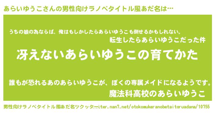 | 女子向けラノベタイトル風あだ名 | 『シンデレラあらいゆうこ家の靴箱館』 |