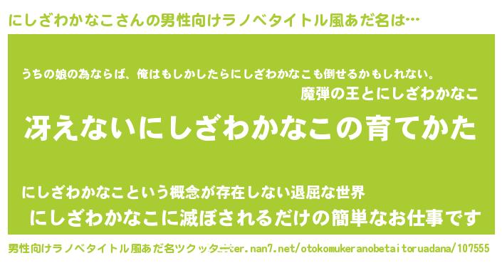 | 胡散臭い通販商品みたいなあだ名 | 『世界が平和になる高級そうな皿…その名も「にしざわかなこ」』 |