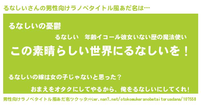 | 女子向けラノベタイトル風あだ名 | 『乙女ゲームの破滅フラグしかない悪役るなしいに転生してしまった…』 |