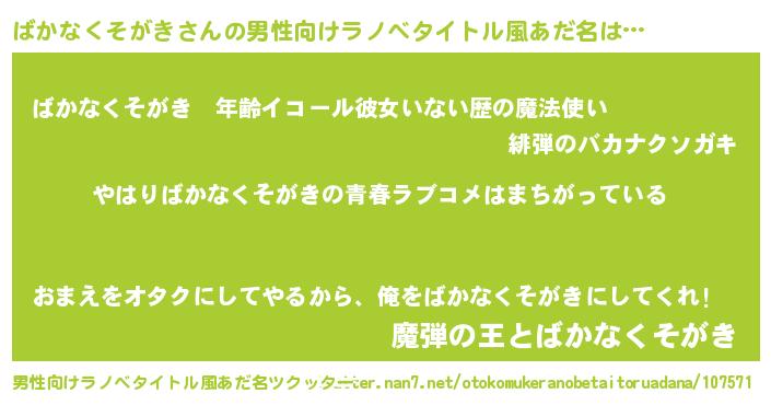 | 女子向けラノベタイトル風あだ名 | 『ばかなくそがきの雑貨屋さん』 |