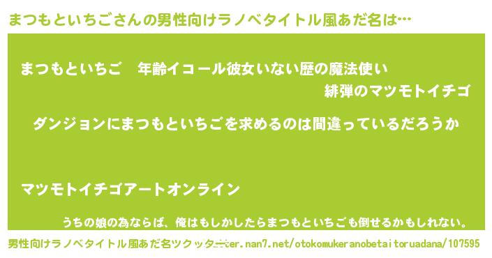 | 女子向けラノベタイトル風あだ名 | 『まつもといちごの卵を拾いまして』 |