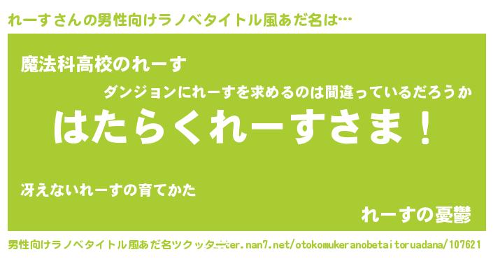 れーすさんの男性向けラノベタイトル風あだ名をツクッター!