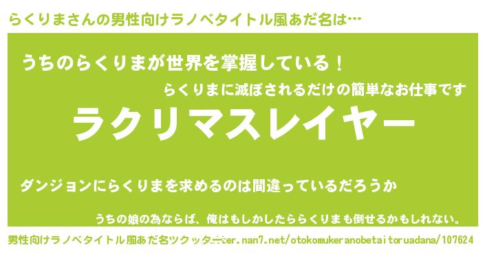 | 胡散臭い通販商品みたいなあだ名 | 『幸せが訪れる高級そうな壺…その名も「らくりま」』 |