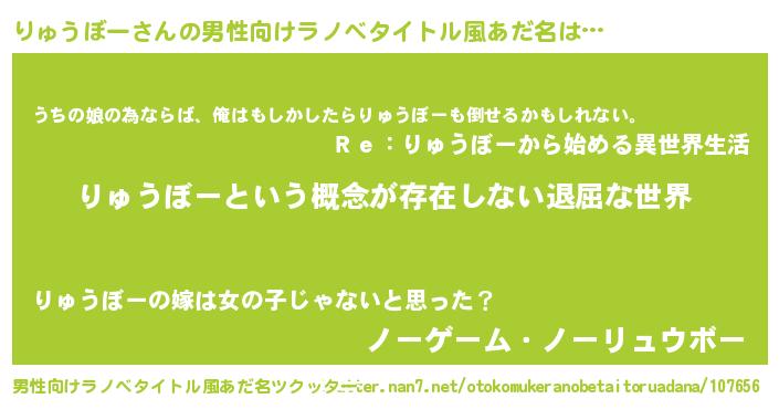 | 胡散臭い通販商品みたいなあだ名 | 『絶対に幸福をもたらす健康食品…その名も「りゅうぼー」』 |