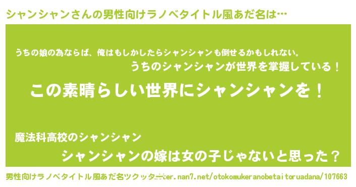 | 意味不明あだ名 | 『住所不定無職シャンシャン(43歳)』 |