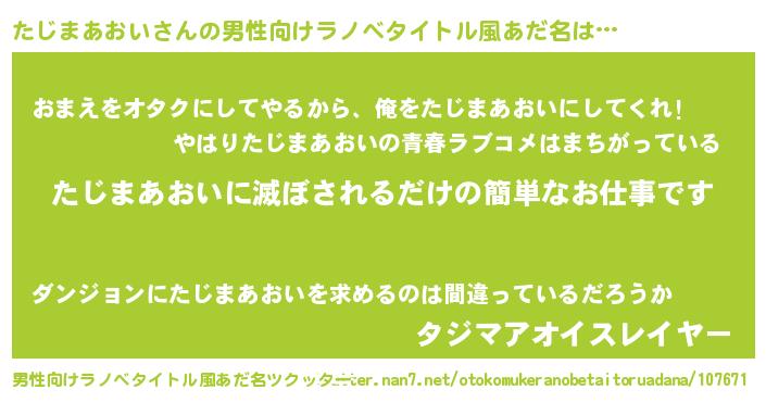 | 胡散臭い通販商品みたいなあだ名 | 『お金では代えられない隕石のかけら…その名も「たじまあおい」』 |