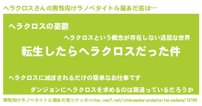 | 女子向けラノベタイトル風あだ名 | 『へラクロスの玉の輿計画!』 |