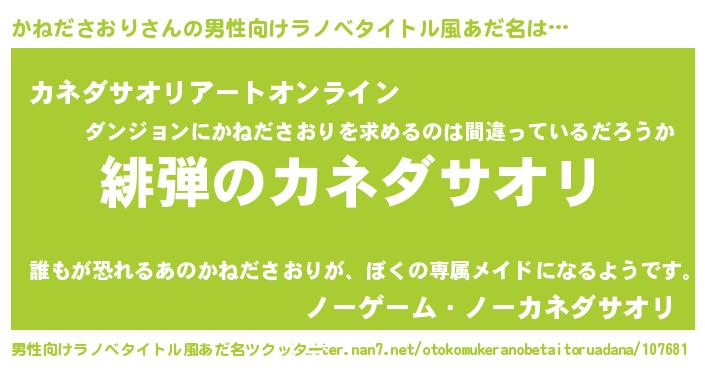 | 胡散臭い通販商品みたいなあだ名 | 『必ず成功する霊験あらたかなお札…その名も「かねださおり」』 |