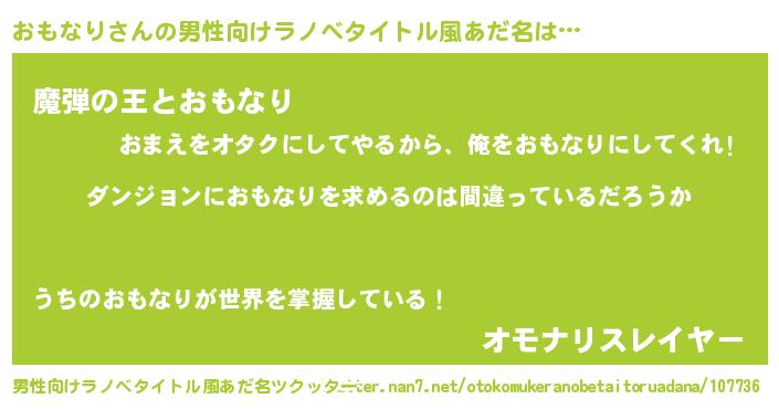 | 女子向けラノベタイトル風あだ名 | 『おもなりの卵を拾いまして』 |
