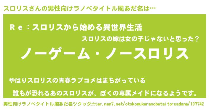 | 女子向けラノベタイトル風あだ名 | 『スロリス恋絵巻』『スロリスの契約王妃』 |