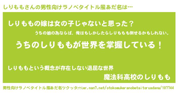 しりももさんの男性向けラノベタイトル風あだ名をツクッター!