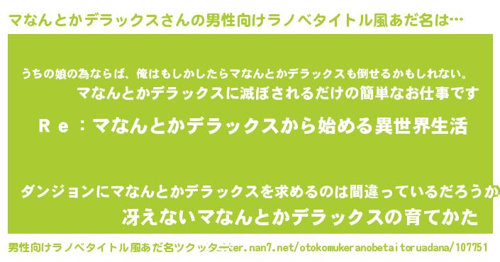 | 女子向けラノベタイトル風あだ名 | 『マなんとかデラックスストレイドッグス』 |